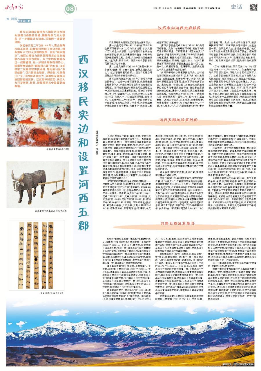 【溯源甘肅】西漢移民實邊和設(shè)置河西五郡