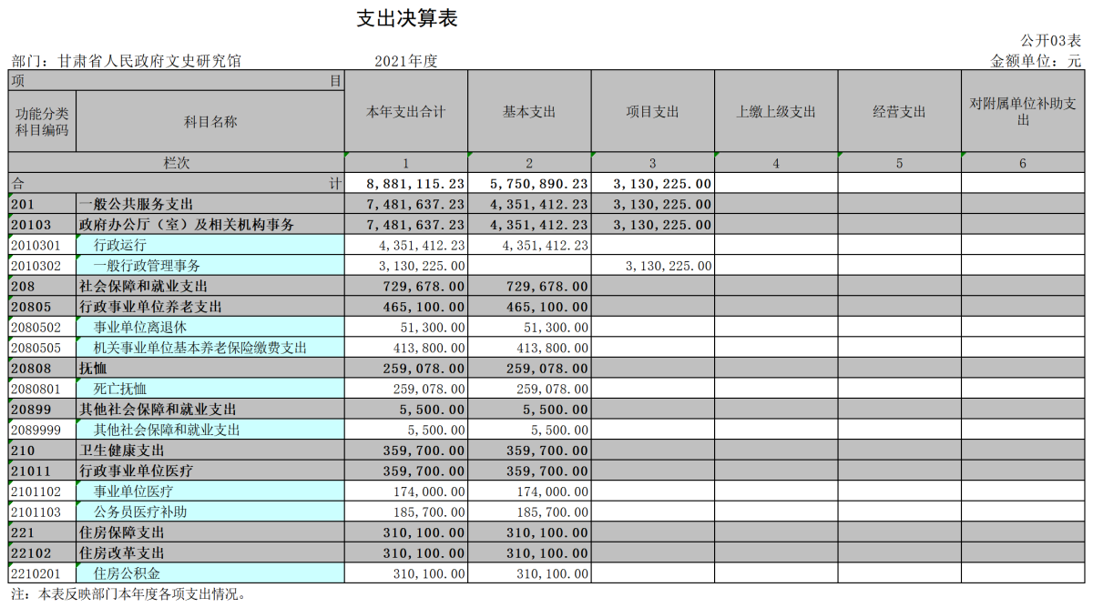 2021年度支出合計(jì)888.11萬元,其中:基本支出575.09萬元,占64.75%;項(xiàng)目支出313.02萬元,占35.25%。
