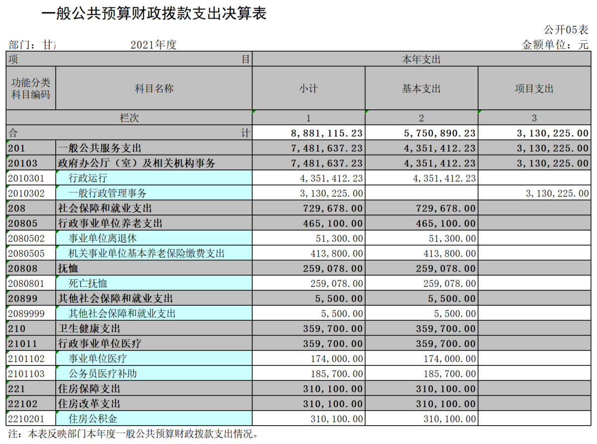 五、一般公共預(yù)算財(cái)政撥款支出決算表