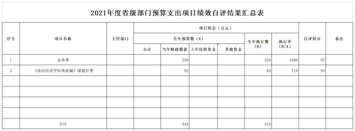 我部門今年在省級部門決算中反映“業(yè)務(wù)費(fèi)”及《政治經(jīng)濟(jì)學(xué)經(jīng)典新編》項(xiàng)目績效自評結(jié)果。