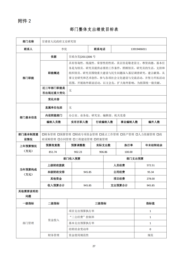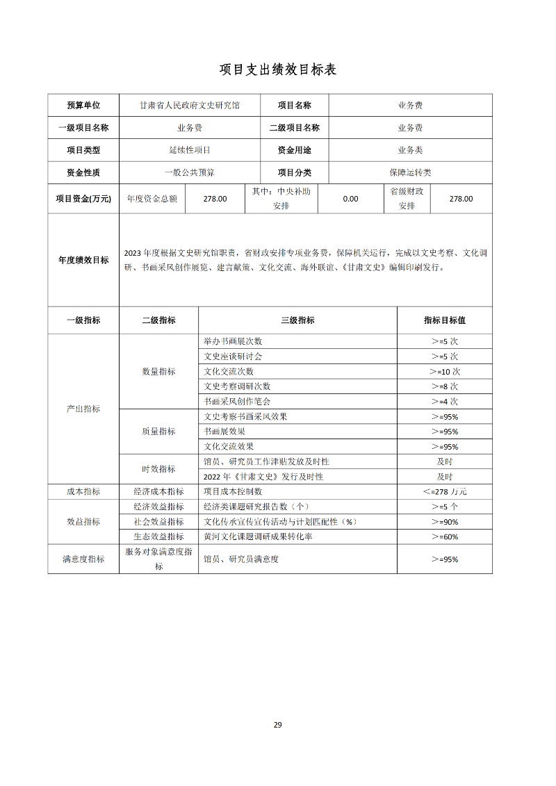 2.甘肅省人民政府文史研究館2023年部門整體支出績效目標及預算項目績效目標表