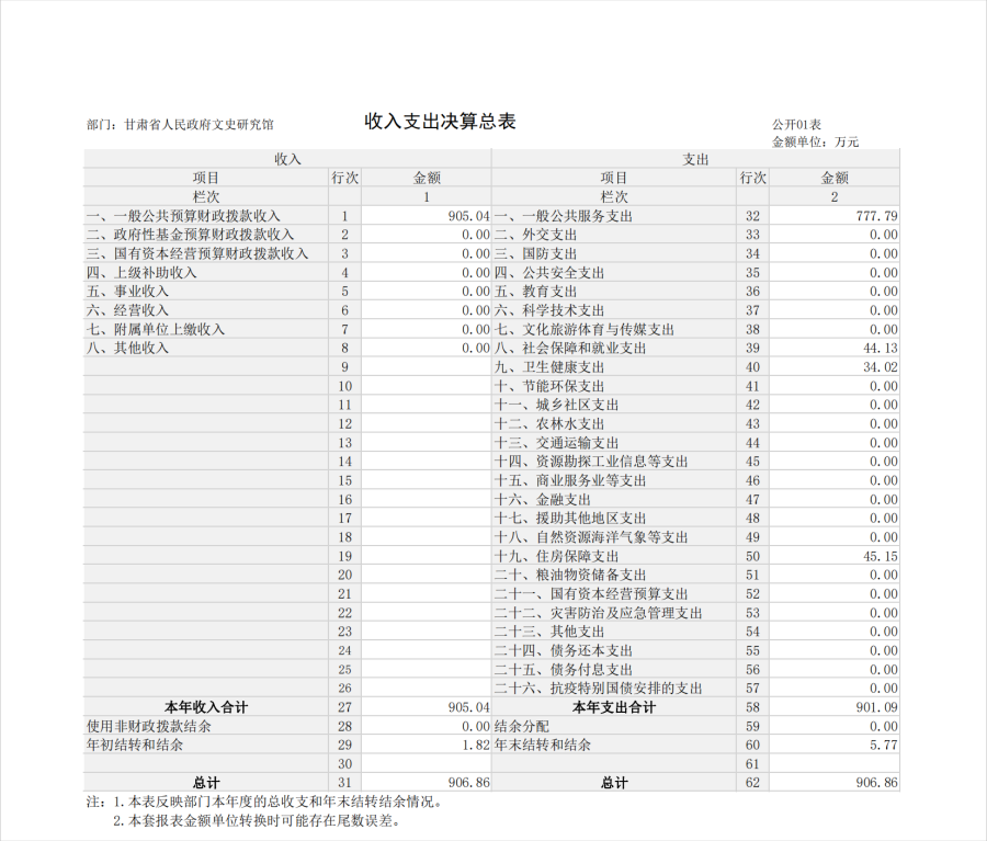 2022年度收、支總計均為906.86萬元。與上年度相比,收、支總計各減少10.79萬元,下降1.18%,主要原因是預算壓減故收支均壓減。
