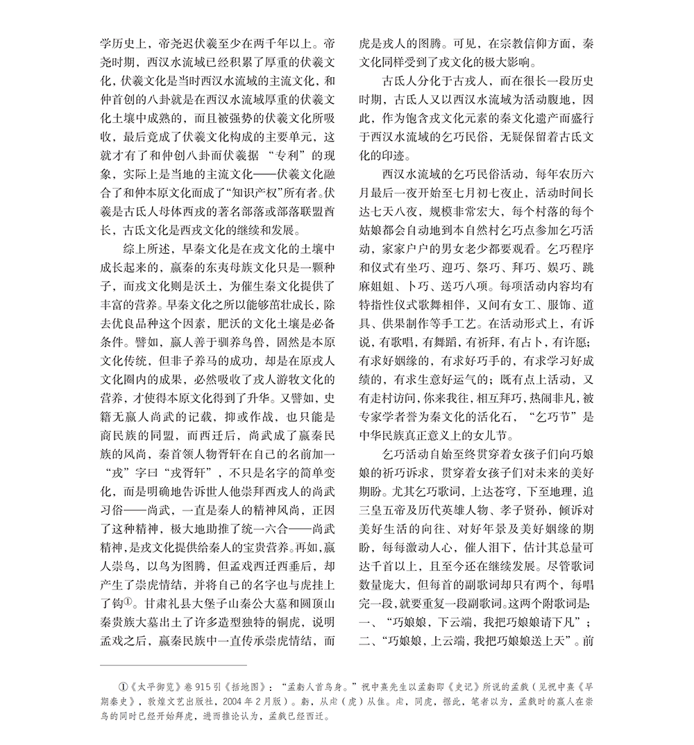 早秦文化中古氐文化元素淺析——以西漢水流域的乞巧民俗文化為例
