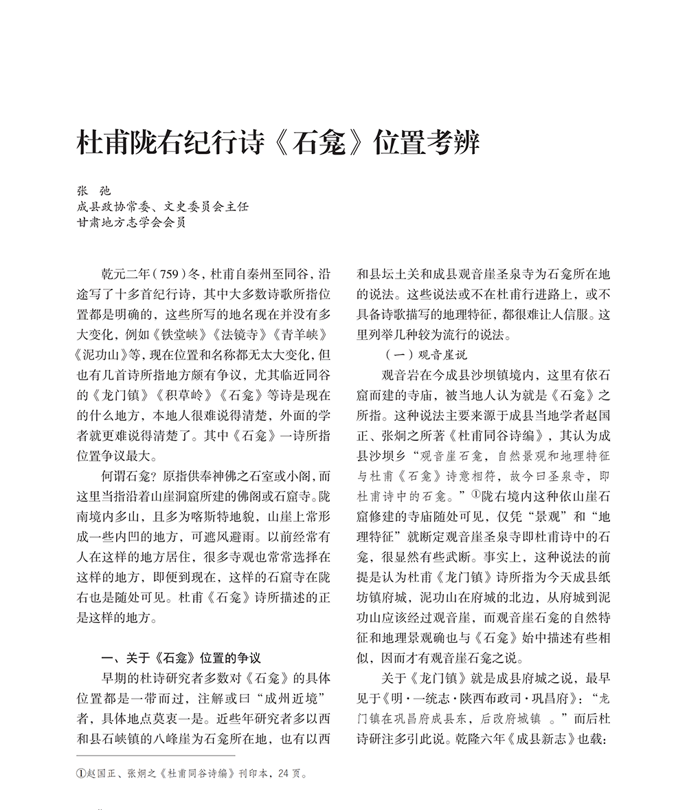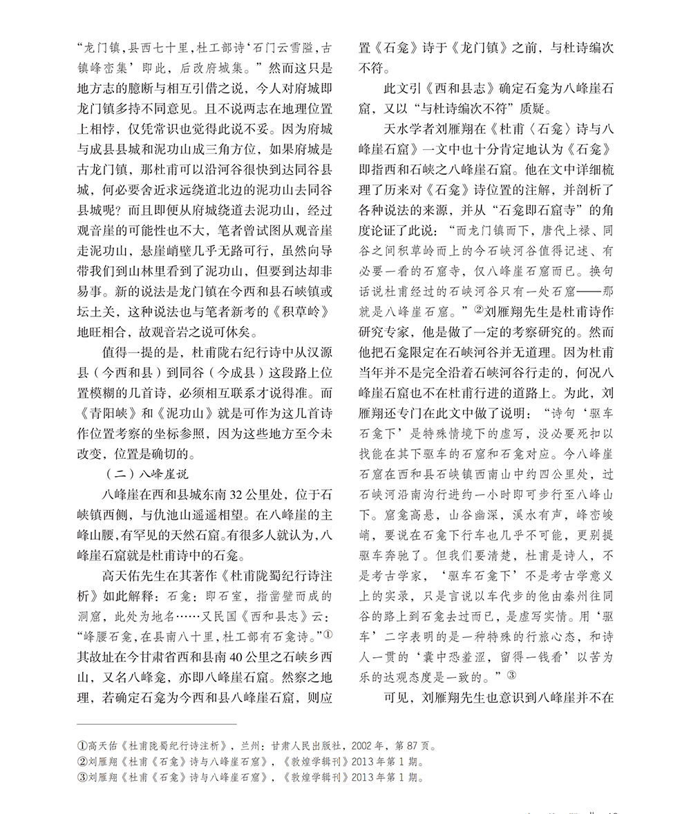 杜甫隴右紀(jì)行詩《石龕》位置考辨