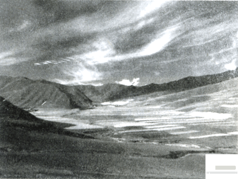 這首詩開頭四句,描繪了朦朧的邊塞月景。天山,即今河西走廊的祁連山,匈奴族稱“天”為“祁連”。玉門關(guān)為西漢所置,故址在今敦煌西北的戈壁灘上,以西域輸入玉石而得名。歷代詩人把玉門關(guān)作為一種詩歌審美意象,表現(xiàn)征人怨婦的離愁思緒。李白《子夜吳歌·秋歌》中有“秋風(fēng)吹不盡,總是玉關(guān)情”句,《王昭君》中有“一上玉關(guān)道,天涯去不歸”句,都是用以拓深離別思念的意境。你看,一輪皓月從雄偉的天山頂上升起來,在邊地夜空的云霧之海濤上沉浮。那凄清柔白的月光慰藉著征人的心靈,遙望故園,離鄉(xiāng)愁緒隨著萬里長風(fēng),吹過玉門關(guān),越過重重關(guān)山,飛回魂?duì)繅艨M的故鄉(xiāng)。