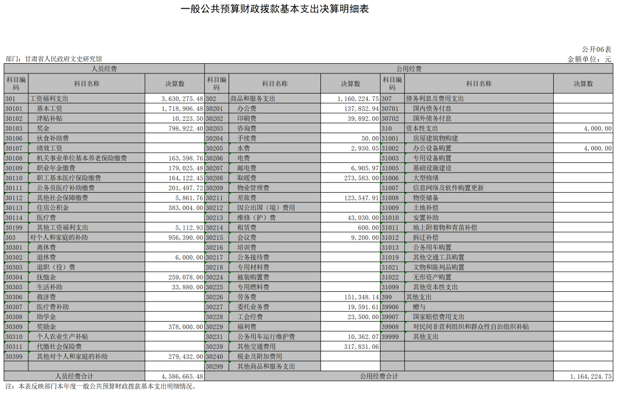 六、一般公共預(yù)算財(cái)政撥款基本支出決算表
