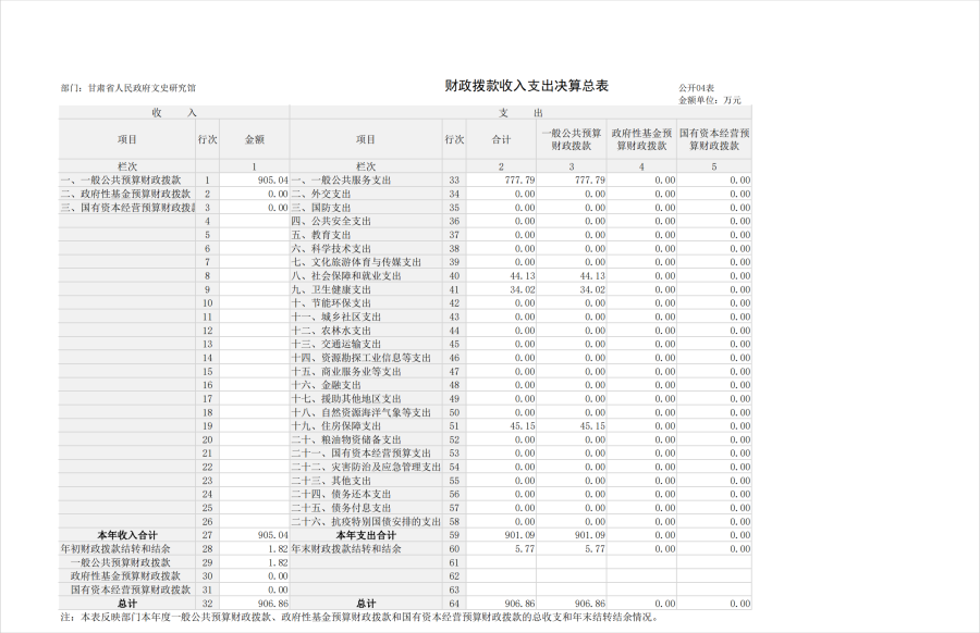 2022年度收、支總計均為906.86萬元。與上年度相比,收、支總計各減少10.79萬元,下降1.18%,主要原因是預算壓減故收支均壓減。