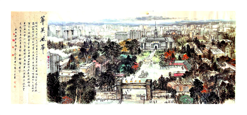 《萃英風華》以蘭州大學全景為藍本,不僅契合“蘭大為美”的核心意象,更以高遠宏闊的意調(diào)、貫通生動的氣韻,將中國傳統(tǒng)書畫藝術(shù)與現(xiàn)代大學精神巧妙聯(lián)結(jié),生動展現(xiàn)蘭州大學昂揚的精神風貌與卓越的發(fā)展成就。同時,該幅作品也充分彰顯了省政府文史館館員、研究員深厚的藝術(shù)造詣,傳遞出他們對地方高等教育發(fā)展的深切關(guān)注與人文情懷。