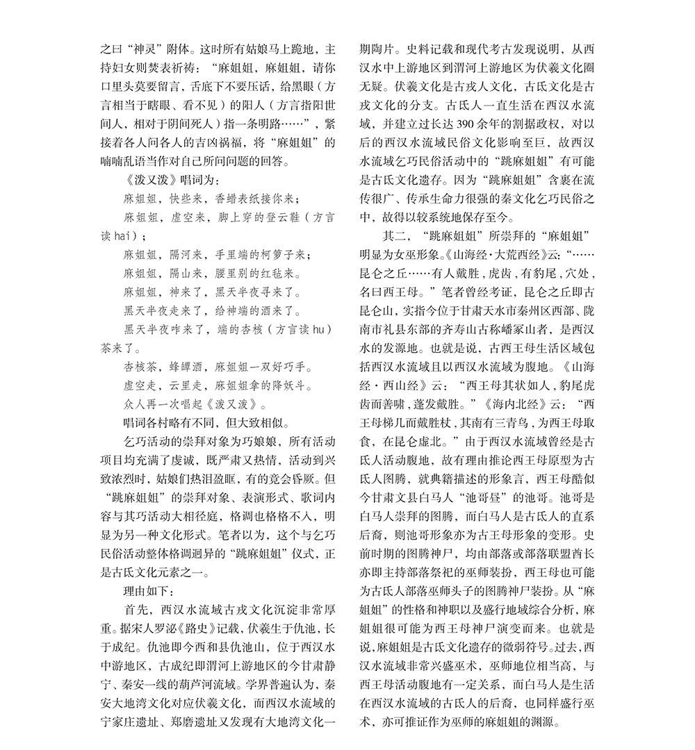 早秦文化中古氐文化元素淺析——以西漢水流域的乞巧民俗文化為例